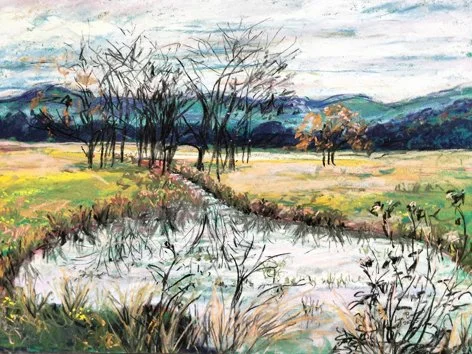 Immersion in the landscape is wonderful. I become a part of the world around me as I draw. Each place is unique, the same place different on different days. I capture mood and light.